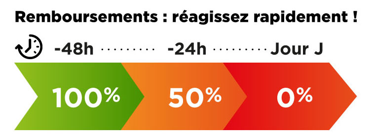 Pour bénéficier d’un remboursement intégral, vous devez transmettre votre annulation à l’agence 48 heures avant le jour de la location. Il est important de prévenir l’agence tout en prenant en compte les jours et les horaires d’ouverture.